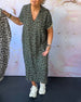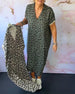 V-neck short-sleeved leopard print dress