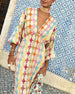 Colorful patchwork printed V-neck three-quarter sleeve dress