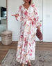 SPECIFICATIONS Style: Elegant Material: Cotton Blends Dress Type: A-Line Dress Length: Maxi Neckline: V neck_V Pattern Type: Floral Sleeve Type: Lantern Sleeve Details: Lace Up,Buttons,Slit Fit Type: Regular Season: Spring,Summer Occasion: Daily Package Includes: 1 x Dress SIZE TABLE Size Bust Length CM INCH CM INCH S 95 37.40 130 51....