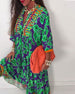 Loose printed V-neck bell sleeve patchwork dress