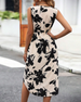 Contrast print sleeveless elegant slit dress