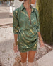 Printed lace-up dolman sleeve crew neck dress