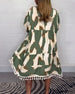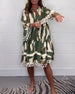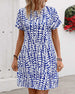 Retro printed V-neck short-sleeved loose dress