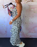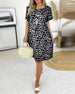 V-neck short-sleeved casual printed long dress