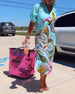 Colorful printed V-neck half-sleeve pocket dress