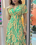 Puff sleeve printed elegant dress