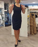 Sleeveless slant neck solid color dress