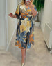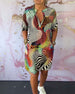 Lapel color portrait print dress