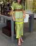 Short-sleeve V-neck contrast printed long dress