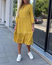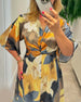 Elegant tie-dye patchwork drawstring balloon sleeve dress