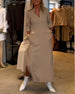 SPECIFICATIONS Style: Casual Material: Cotton Blends Dress Type: A-Line Dress Length: Maxi Neckline: Round Neck Pattern Type: Solid Color Sleeve Type: Regular sleeve Sleeve Length: Long Sleeve Details: Knot Fit Type: Regular Season: Spring, Fall Occasion: Daily Package Includes: 1 x Dress SIZE TABLE Size Bust Length CM INCH CM INCH ...