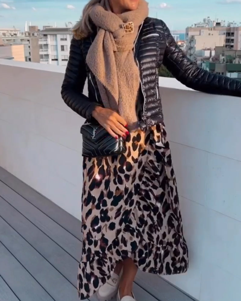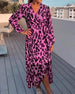 SPECIFICATIONS Style: Casual, Vacation Material: 5% Spandex, 95% Polyester Dress Type: A-Line Dress Length: Midi Neckline: V neck_V Pattern Type: Print, Leopard Sleeve Type: Regular sleeve Sleeve Length: Long Sleeve Details: Bandage Fit Type: Regular Season: Spring, Fall, Winter Occasion: Daily, Vacation Package Includes: 1 x Dress (With Belt) ...