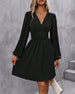 SPECIFICATIONS Style: Casual, Elegant Material: Polyester Dress Type: A-Line Dress Length: Knee Length Neckline: Round Neck Pattern Type: Solid Color Sleeve Type: Flare Sleeve Sleeve Length: Long Sleeve Details: Shirred, Bowknot Fit Type: Regular Season: Spring, Fall Occasion: Daily, Vacation Package Includes: 1 x Dress SIZE TABLE Size...