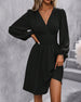 SPECIFICATIONS Style: Elegant, Business Material: 5% Spandex, 95% Polyester Dress Type: A-Line Dress Length: Knee Length Neckline: V neck_V Pattern Type: Solid Color Sleeve Type: Lantern Sleeve Sleeve Length: Long Sleeve Fit Type: Regular Season: Spring, Summer, Fall Occasion: Daily, Work Package Includes: 1 x Dress SIZE TABLE S...