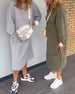 SPECIFICATIONS Style: Casual Material: Cotton Blends Dress Length: Midi Neckline: Round Neck Pattern Type: Solid Color Sleeve Type: Dropped shoulder Sleeve Length: Long Sleeve Details: Pocket, Buttons Fit Type: Regular Season: Spring, Fall, Winter Occasion: Daily Package Includes: 1 x Dress SIZE TABLE Size Bust Length CM INC...