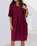 SPECIFICATIONS Style: Elegant, Business Material: 100% polyester Dress Type: Shift dress Dress Length: Midi Neckline: V neck_V Pattern Type: Solid Color Sleeve Type: Regular sleeve Sleeve Length: 3/4 Sleeve Details: Pocket, Slit Fit Type: Regular Season: Spring, Summer, Fall Occasion: Daily, Work Package Includes: 1 x Dress SIZE TABLE S...