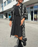 SPECIFICATIONS Style: Casual Material: Cotton Blends Dress Type: A-Line Dress Length: Knee Length Neckline: V neck_V Pattern Type: Print Sleeve Type: Regular sleeve Sleeve Length: Long Sleeve Details: Buttons Fit Type: Regular Season: Spring, Fall Occasion: Daily Package Includes: 1 x Dress SIZE TABLE Size Bust Length S 95 100 ...
