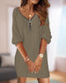 SPECIFICATIONS Style: Casual Material: Cotton Blends Dress Type: Shift dress Dress Length: Knee Length Neckline: V neck_V Pattern Type: Solid Color Sleeve Type: Regular sleeve Sleeve Length: Long Sleeve Details: Zipper Fit Type: Regular Season: Spring, Fall, Winter Occasion: Daily Package Includes: 1 x Dress SIZE TABLE Size Bu...