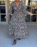 V-neck printed drawstring maxi dress