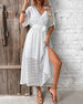 SPECIFICATIONS Style: Casual, Vacation Material: 3% Spandex,97% Polyester Dress Type: Shift dress Dress Length: Midi Neckline: V neck_V Pattern Type: Print Sleeve Type: Regular sleeve Sleeve Length: Half Sleeve Details: Slit Fit Type: Regular Season: Spring, Summer, Fall Occasion: Daily, Vacation Package Includes: 1 x Dress SIZE TABLE ...