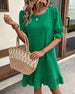 SPECIFICATIONS Style: Casual, Chic Material: Cotton Blends Dress Type: Shift dress Dress Length: Knee Length Neckline: Round Neck Pattern Type: Solid Color Sleeve Type: Lantern Sleeve Sleeve Length: Half Sleeve Details: Ruffle Fit Type: Regular Season: Spring, Summer Occasion: Daily Package Includes: 1 x Dress SIZE TABLE Size Bus...