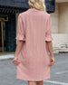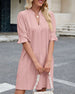 SPECIFICATIONS Style: Casual Material: Cotton Blends Dress Type: Shift dress Dress Length: Knee Length Neckline: V neck_V Pattern Type: Solid Color Sleeve Type: Regular sleeve Sleeve Length: Short Sleeve Details: Pocket Fit Type: Regular Season: Spring,Summer Occasion: Daily Package Includes: 1 x Dress SIZE TABLE Size Bust Length C...