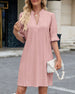 SPECIFICATIONS Style: Casual Material: Cotton Blends Dress Type: Shift dress Dress Length: Above-knee Neckline: V neck_V Pattern Type: Solid Color Sleeve Type: Ruffle Sleeve Sleeve Length: Half Sleeve Details: Ruffle Fit Type: Regular Season: Spring,Summer Occasion: Daily Package Includes: 1 x Dress SIZE TABLE Size Bust Length CM IN...