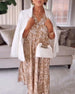 SPECIFICATIONS Style: Casual Material: Cotton Blends Dress Type: Shift dress Dress Length: Maxi Neckline: Halter Pattern Type: Print Sleeve Length: Sleeveless Details: Backless Fit Type: Regular Season: Spring,Summer Occasion: Daily Package Includes: 1 x Dress SIZE TABLE Size Bust Length CM INCH CM INCH S 97 38.19 130 51.18 M 101 39...