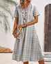 SPECIFICATIONS Style: Casual Material: Cotton Blends Dress Type: A-Line Dress Length: Midi Neckline: V neck_V Pattern Type: Plaid Sleeve Type: Regular sleeve Sleeve Length: Short Sleeve Details: Pocket,Buttons Fit Type: Regular Season: Spring,Summer Occasion: Daily Package Includes: 1 x Dress SIZE TABLE Size Bust Length CM INCH CM ...