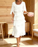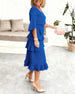 SPECIFICATIONS Style: Elegant Material: Cotton Blends Dress Type: A-Line Dress Length: Midi Neckline: Round Neck Pattern Type: Solid Color Sleeve Type: Slit Sleeves Sleeve Length: Half Sleeve Details: Ruffle Fit Type: Regular Season: Spring,Fall Occasion: Daily Package Includes: 1 x Dress SIZE TABLE Size Bust Length CM INCH CM INCH S ...