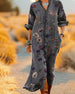 SPECIFICATIONS Style: Chic Material: Cotton Blends Dress Type: A-Line Dress Length: Maxi Neckline: V neck_V Sleeve Type: Regular sleeve Sleeve Length: 3/4 Sleeve Fit Type: Loose Season: Fall,Winter Occasion: Daily Package Includes: 1 x Dress SIZE TABLE Size Bust Length CM INCH CM INCH S 97 38.19 125 49.21 M 101 39.76 131 5...