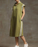 Half-Sleeve Pleated A-Hem V-Neck Dress