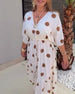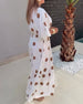 SPECIFICATIONS Style: Casual Material: Cotton Blends Dress Type: A-Line Dress Length: Maxi Neckline: V neck_V Pattern Type: Polka Dot Sleeve Type: Regular sleeve Sleeve Length: 3/4 Sleeve Details: Drawstring Fit Type: Regular Season: Spring,Summer Occasion: Daily Package Includes: 1 x Dress SIZE TABLE Size Bust Length CM INCH CM INC...