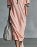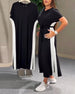 SPECIFICATIONS Style: Casual Material: Cotton Blends Dress Type: A-Line Dress Length: Maxi Neckline: Round Neck Pattern Type: Color Block Sleeve Type: Regular sleeve Sleeve Length: Short Sleeve Fit Type: Regular Season: Spring,Summer Occasion: Daily Package Includes: 1 x Dress SIZE TABLE Size Bust Length CM INCH CM INCH S 92 36....
