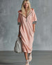 SPECIFICATIONS Style: Casual Material: Cotton Blends Dress Type: A-Line Dress Length: Knee Length Neckline: V neck_V Pattern Type: Solid Color Sleeve Type: Regular sleeve Sleeve Length: 3/4 Sleeve Details: Shirred Fit Type: Regular Season: Spring,Summer Occasion: Daily Package Includes: 1 x Dress SIZE TABLE Size Bust Length CM INCH...