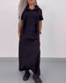 SPECIFICATIONS Style: Casual Material: Cotton Blends Dress Type: Shift dress Dress Length: Maxi Neckline: Round Neck Pattern Type: Solid Color Sleeve Length: Short Sleeve Details: Pocket Fit Type: Regular Season: Spring,Summer Occasion: Daily Package Includes: 1 x Dress SIZE TABLE Size Bust Length CM INCH CM INCH S 95 37.4 13...