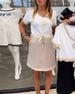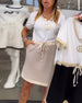 SPECIFICATIONS Style: Casual Material: Cotton Blends Dress Type: Shift dress Dress Length: Knee Length Neckline: Round Neck Pattern Type: Color Block Sleeve Type: Regular sleeve Sleeve Length: Short Sleeve Details: Lace Up Fit Type: Regular Season: Spring,Summer Occasion: Daily Package Includes: 1 x Dress SIZE TABLE Size Bust Length ...