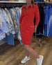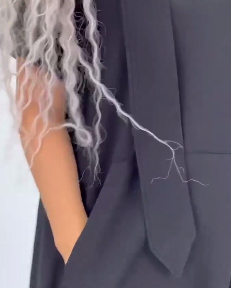SPECIFICATIONS Style: Casual Material: Cotton Blends Dress Type: Shift dress Dress Length: Knee Length Neckline: Lapel Pattern Type: Solid Color Sleeve Type: Regular sleeve Sleeve Length: Nine Points Sleeve Details: Pocket,Zipper Fit Type: Regular Season: Spring,Summer Occasion: Daily Package Includes: 1 x Dress SIZE TABLE Size Bust Lengt...
