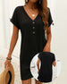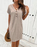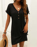 SPECIFICATIONS Style: Casual Material: Cotton Blends Dress Type: Shift dress Dress Length: Above-knee Neckline: V neck_V Pattern Type: Solid Color Sleeve Type: Regular sleeve Sleeve Length: Short Sleeve Details: Buttons Fit Type: Regular Season: Spring,Summer Occasion: Daily Package Includes: 1 x Dress SIZE TABLE Size Bust Length CM INC...