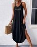 SPECIFICATIONS Style: Casual Material: Cotton Blends Dress Type: Cami Dress Length: Maxi Neckline: V neck_V Pattern Type: Letter,Print Sleeve Length: Sleeveless Details: Slit Fit Type: Regular Season: Spring,Summer Occasion: Daily Package Includes: 1 x Dress SIZE TABLE Size Bust Length CM INCH CM INCH S 97 38.19 130 51.18 M 101 39.7...