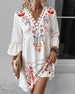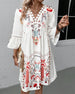 V-neck Lace Stitching Casual Versatile Printed Dress