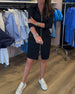 SPECIFICATIONS Style: Casual Material: Cotton Blends Dress Type: Shift dress Dress Length: Knee Length Neckline: Lapel Pattern Type: Solid Color Sleeve Type: Regular sleeve Sleeve Length: Short Sleeve Details: Shirred Fit Type: Regular Season: Spring,Summer Occasion: Daily Package Includes: 1 x Dress SIZE TABLE Size Bust Length CM ...