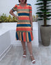 SPECIFICATIONS Style: Casual Material: Cotton Blends Dress Type: A-Line Dress Length: Knee Length Neckline: Round Neck Pattern Type: Striped Sleeve Type: Regular sleeve Sleeve Length: Short Sleeve Fit Type: Regular Season: Spring,Summer Occasion: Daily Package Includes: 1 x Dress SIZE TABLE Size Bust Length CM INCH CM INCH S 97 3...