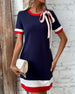 Half-Zip Colorblock Slim-Fit Short-Sleeved Dress