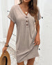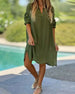 Loose Short Sleeve Solid Color Cotton and Linen Shirt Dress