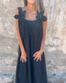 SPECIFICATIONS Style: Casual Material: Cotton Blends Dress Type: A-Line Dress Length: Maxi Neckline: V neck_V Pattern Type: Solid Color Sleeve Length: Nine Points Sleeve Details: Patchwork Fit Type: Regular Season: Spring,Summer Occasion: Daily Package Includes: 1 x Dress SIZE TABLE Size Bust Length CM INCH CM INCH S 97 38.19 132 5...