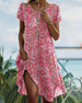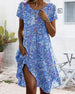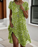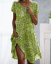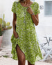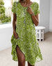 V-Neck Short-Sleeved Waist Pleated Printed Dress