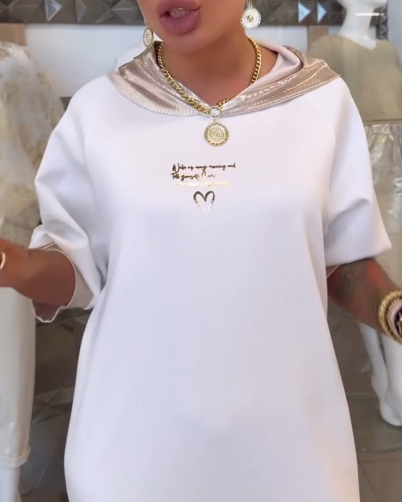 Hooded Solid Color Loose Slit Dress