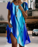 Round Neck Printed Trumpet Short Sleeve Dress