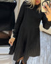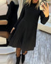 SPECIFICATIONS Style: Casual Material: A:95% Polyester,5% Spandex; B:60% Polyester,40% Cool Silk Cotton Dress Type: A-Line Dress Length: Midi Neckline: Round Neck Pattern Type: Solid Color Sleeve Type: Regular sleeve Sleeve Length: Long Sleeve Details: Patchwork,Shirred Fit Type: Regular Season: Fall,Winter Occasion: Daily Package Includes: 1...